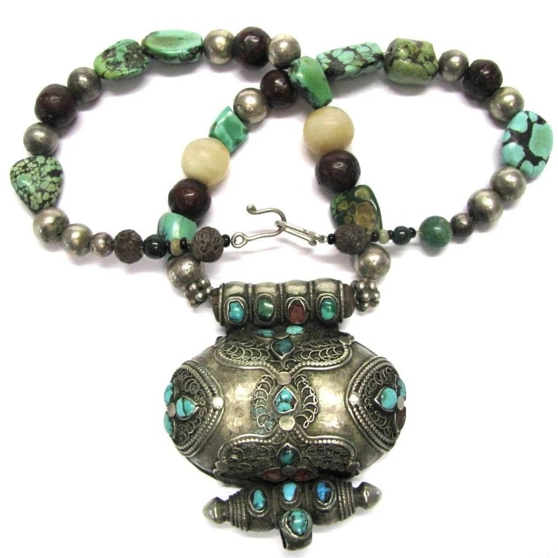 Antique Tibetan Gau, Turquoise Necklace – 1